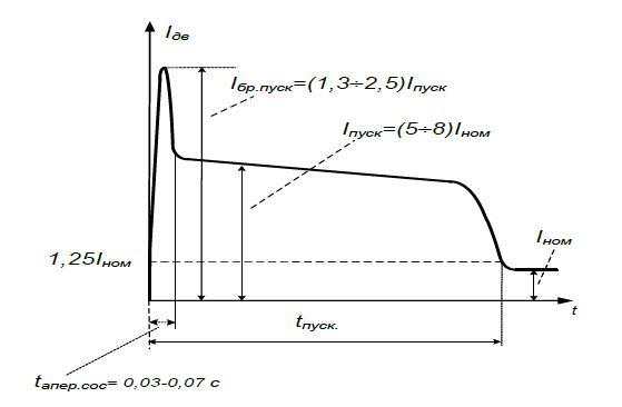 Для оценки пригодности выбранного трансформатора тока по погрешности, соответствующей предельной кратности тока необходимо определить максимальные броски пускового тока электродвигателя (рис. 2)