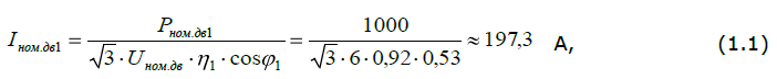 1.1 Значение номинального тока для выбранного нами электродвигателя при работе на 1-й скорости согласно формуле (1) будет равно:
