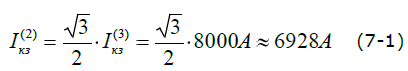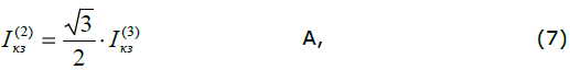 Значение тока двухфазного КЗ на вводах питания электродвигателя определяем по формуле (7):