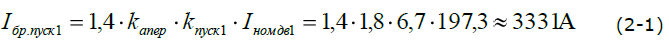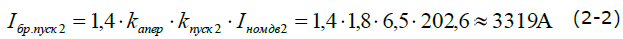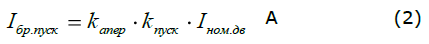 Значение максимального пускового тока при прямом пуске электродвигателя с учетом апериодической составляющей находят по формуле (2):