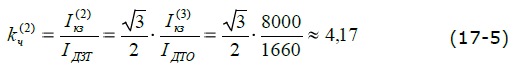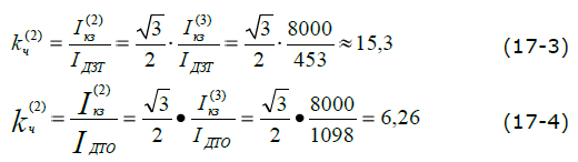 Проверяем чувствительность ДЗТ и ДТО, для чего находим значения коэффициентов чувствительности защиты при двухфазном КЗ на вводах питания электродвигателя по формуле (17) [2]: