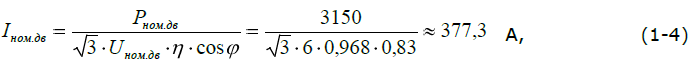 3.12Номинальный ток электродвигателя АО-3150-6000 согласно формуле (1) равен: