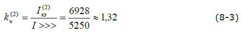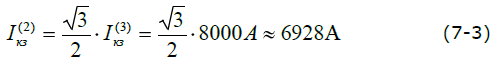 Значение тока двухфазного КЗ на вводах питания УПП при одинаковых исходных данным буде равно ранее вычисленному по формуле (7-3) значению, т.е.