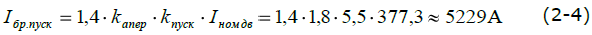 , соответствующее максимальному броску пускового тока электродвигателя Iбр.пуск находим по формуле (9), приведенной в [2].