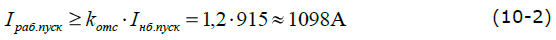 - при токе, соответствующем максимальному броску апериодической составляющей пускового тока электродвигателя (для ТТ, установленных со стороны нейтрали электродвигателя).