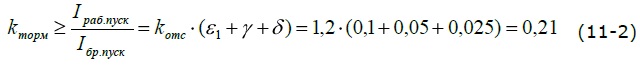Коэффициент торможения дифференциальной находим по формуле (11) [2], а результат округляем в большую сторону (до сотых долей):