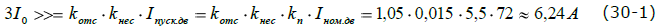 Знание номинального тока электродвигателя поможет нам найти уставку срабатывания защиты от двойных замыканий на землю в первичных значениях. С этой целью используем формулу (30):