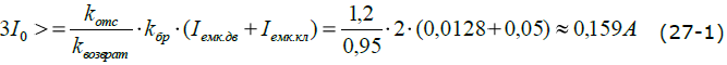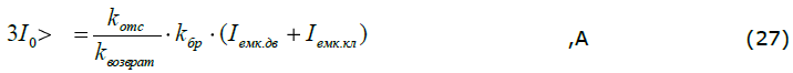 Ток срабатывания защиты от ОЗЗ в первичных значениях вычисляют по формуле (27):