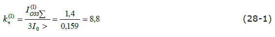 - коэффициент, показывающий допустимое значение токов нулевой последовательности для сетей с изолированной нейтралью с учетом разброса индуктивных сопротивлений фазных обмоток электродвигателя;