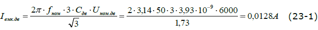 Значение ѐмкостного тока кабельной линии находят либо из табл. 2 (для кабелей с бумажной изоляцией), либо вычисляют по формуле (25), дающей приближенный результат.