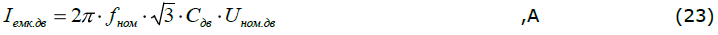 Используя приведенные формулы найдем сначала электрическую ѐмкость двигателя, а затем его ѐмкостной ток.