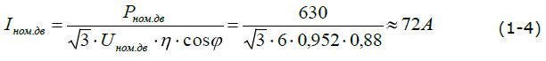 Определение уставки срабатывания второй ступени ОЗЗ начнем с нахождения номинального тока электродвигателя по формуле (1).