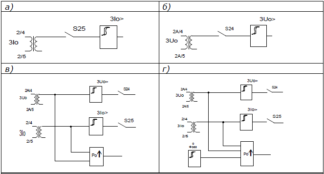 В некоторых исполнениях блоков БМРЗ диаграмма направленности ОЗЗ может изменяться (рис. 1, д).