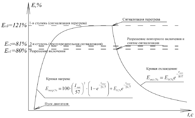 Полученная по результатам расчетов характеристика алгоритма «Тепловая модель электродвигателя» приведена на рис. 2.