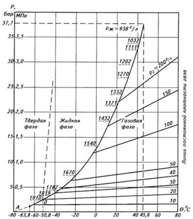 Однако это преимущество становится недостатком элегаза при низких температурах по причине перехода его в жидкое состояние и потере изоляционных свойств, что определяет дополнительные требования к температурному режиму элегазового оборудования в эксплуатации. На рис. 4 приведена зависимость состояния элегаза от давления и температуры.