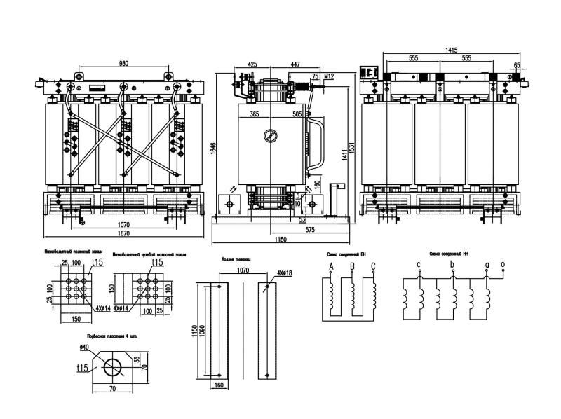 •Габариты трансформатора, мм: 1670*1300*1531;