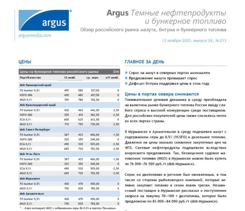 Argus Темные нефтепродукты и бункерное топливо (Argus мазут РФ) (во вложении)
