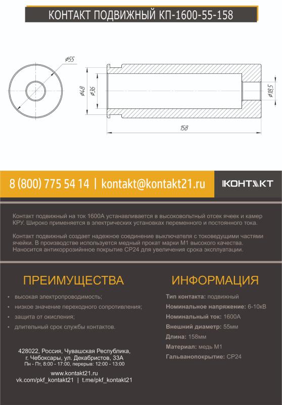 Контакт подвижный на ток 1600А устанавливается в высоковольтный отсек ячеек и камер КРУ. Широко применяется в электрических установках переменного и постоянного тока.