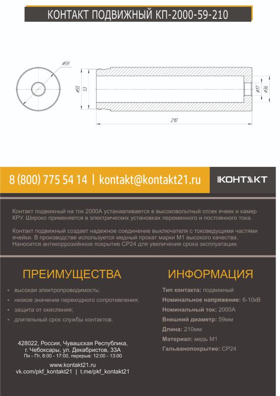 Контакт подвижный на ток 2000А устанавливается в высоковольтный отсек ячеек и камер КРУ. Широко применяется в электрических установках переменного и постоянного тока.