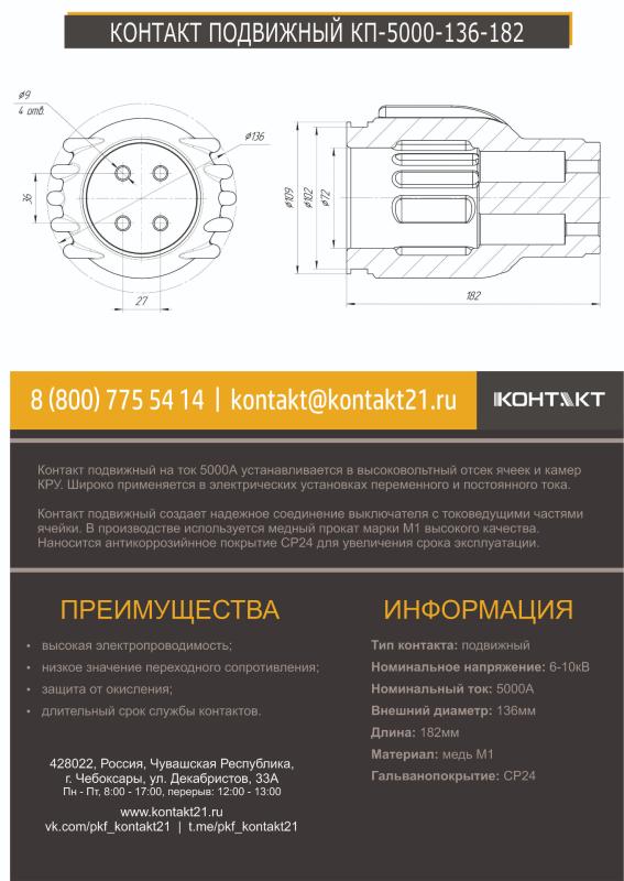 Контакт подвижный на ток 5000А устанавливается в высоковольтный отсек ячеек и камер КРУ. Широко применяется в электрических установках переменного и постоянного тока.