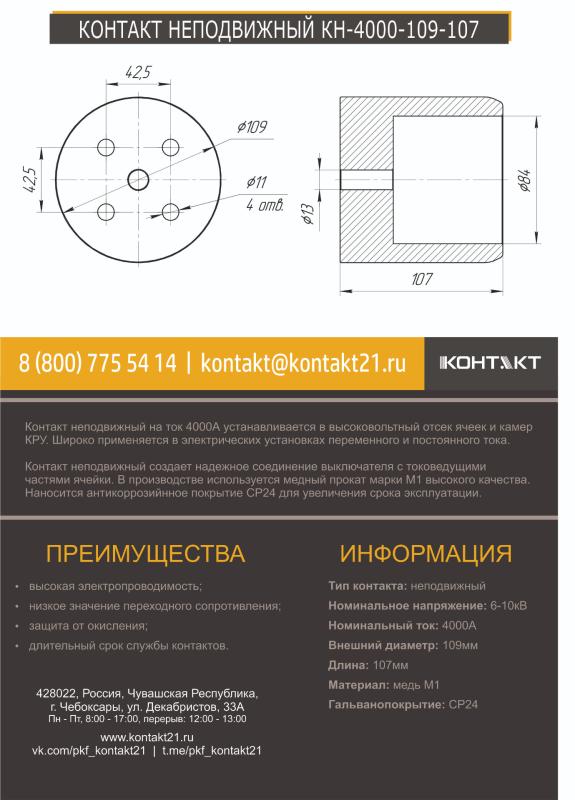 Контакт неподвижный на ток 4000А устанавливается в высоковольтный отсек ячеек и камер КРУ. Широко применяется в электрических установках переменного и постоянного тока.