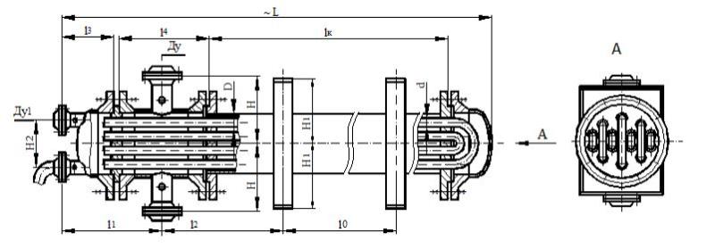 Теплообменник труба в трубе ттм предусмотрен для организации процессов теплообмена при больших расходах рабочих сред от 10 до 300 тонн в час. Участвуют в процессах конвективного теплообмена: жидкость - жидкость, жидкость - газ и газ - газ. В теплообменниках ттм предусмотрена компенсация линейного удлинения теплообменных труб, для труб кожуха так же есть компенсатор, но только в определенных пределах. Перепад температуры на входе и выходе не должен быть более 150 0С.