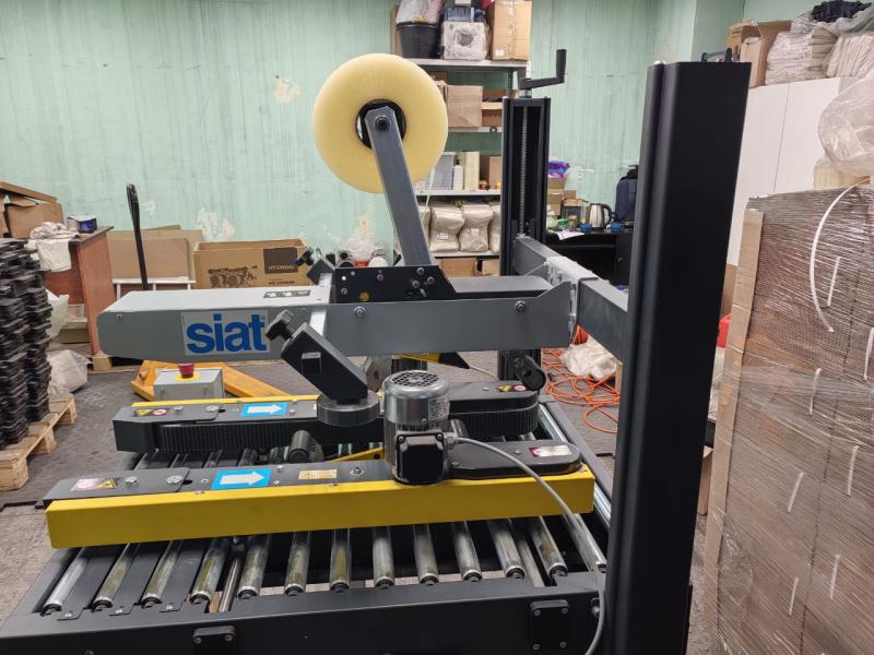 Полуавтоматический заклейщик коробов (гофрокоробов) S8 SIAT предназначен для автоматической заклейки верхнего и нижнего клапана короба клейкой лентой типа «скотч». Так же возможна установка в линию.