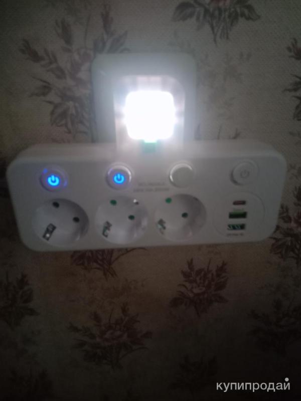 Продам новую розетку накладную четырехместную открытой установки с заземлением, с подсветкой 5Вт, 2 стандартных и type C USB разъёмами.