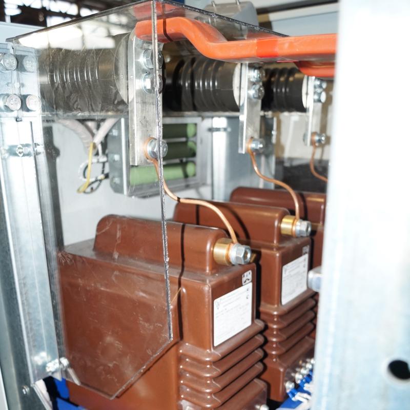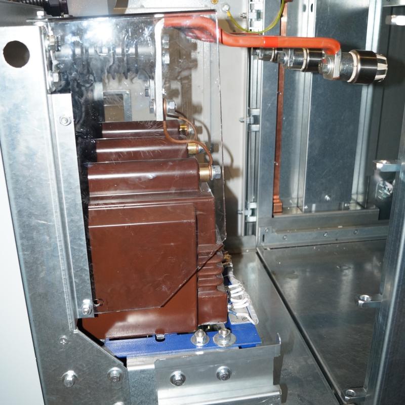 Для обеспечения электрического контакта (заземления) выкатного элемента с корпусом шкафа на выдвижном элементе имеется шина заземления, которая своей поверхностью скользит по шине, установленной на дне отсека выкатного элемента.