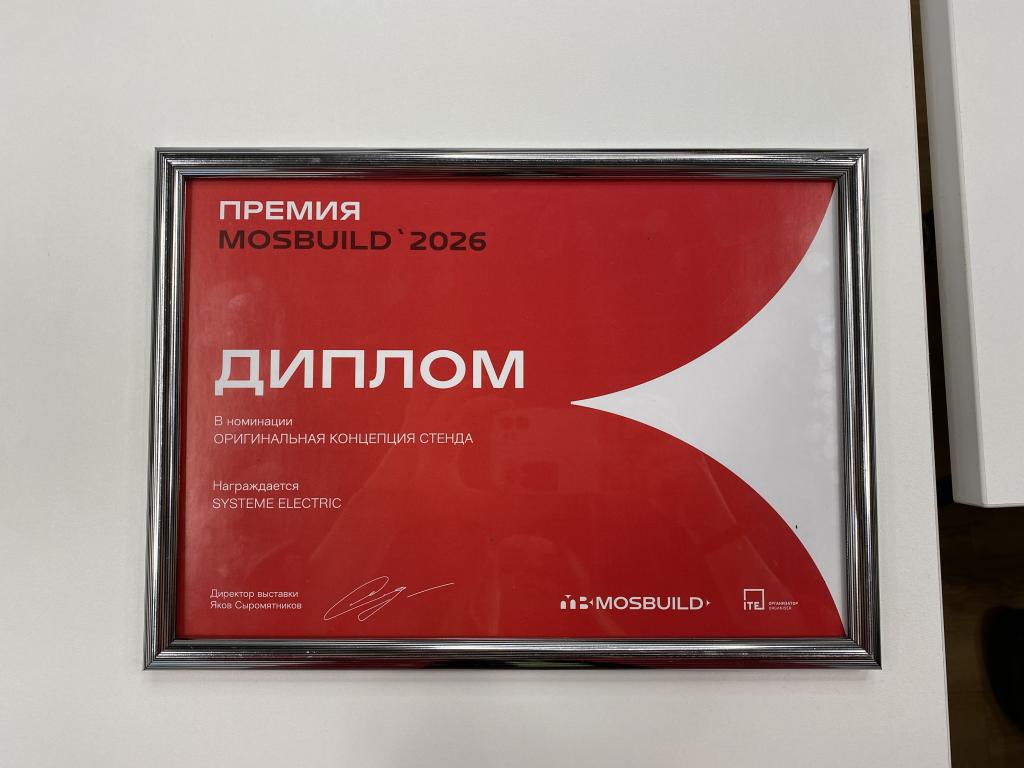 Москва, 16 апреля 2026 года. – Российская компания «Систэм Электрик» (Systeme Electric), разработчик и производитель комплексных решений в области распределения электроэнергии и автоматизации, с успехом продемонстрировала на MosBuild грядущую премьеру – серию электроустановочных изделий Systeme Infinity, а также была награждена дипломом от организаторов за оригинальную концепцию стенда.